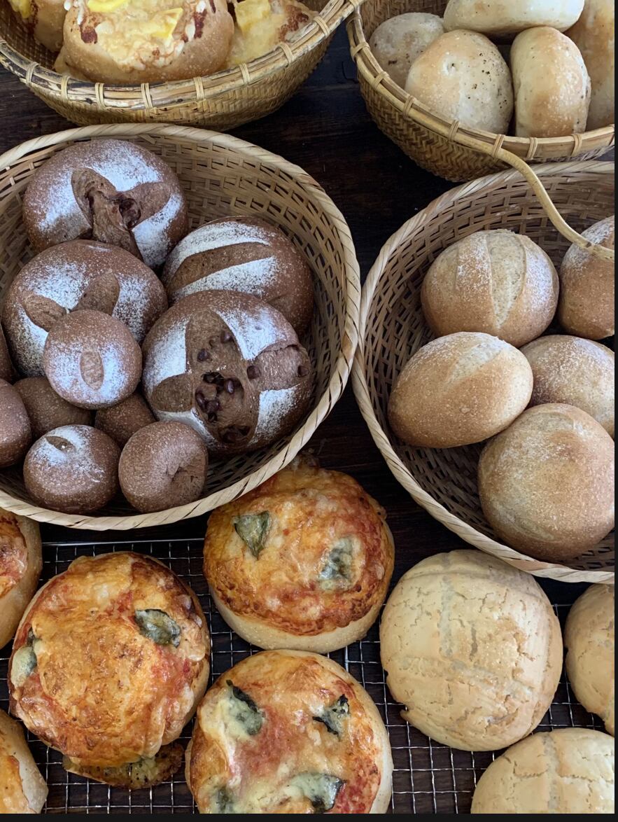 お米の酵母を使っているので市販のパンに比べてもちもちしてます。しっかり食べ応えのあるパンです。